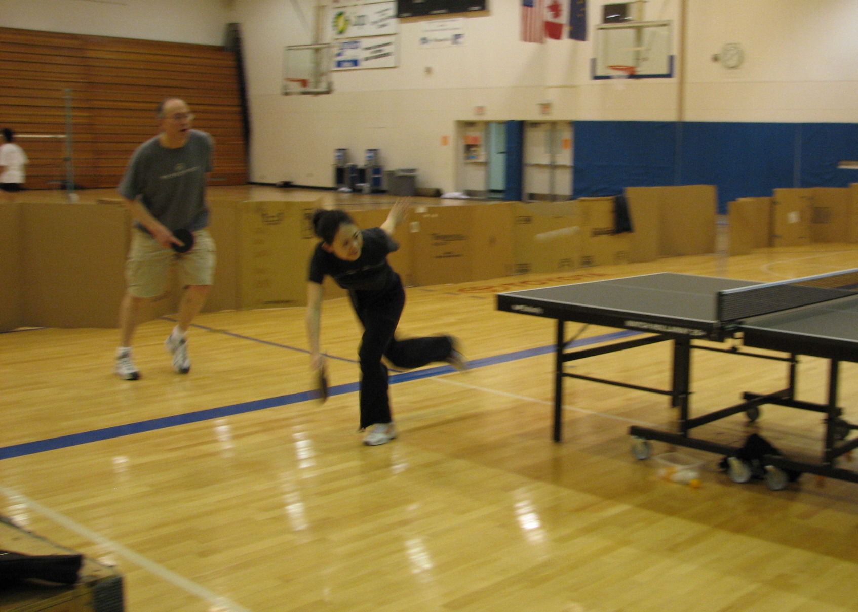 Lloyd Hilling and CiCi Chen won three straight matches and captured first place in the Random Doubles Table Tennis Tournament held at the Patty Center on Sunday, February 18th. The second place team of Carol Johnson and Eric Carvalho put up strong competition for Hilling and Chen and sent the match into a fifth game tie breaker. With strong serving Chen and Hilling took an early lead in the game and managed to fend off Johnson and Carvalho's continued attacks to take the 11-8 victory and $20 first prize!